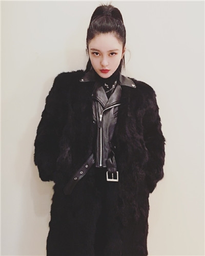 何穗最新街拍,灰色毛衣+墨绿色光泽感半裙,文艺慵懒,少女感十足。马海毛毛衣来自H&M,手提包和粉色毛拖鞋均来自Gucci,半裙来自Tibi 2016