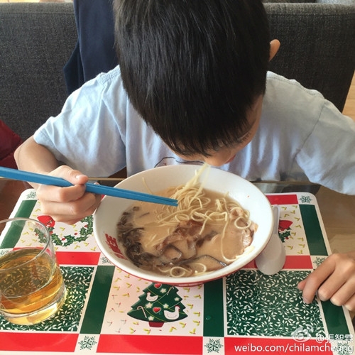 今天(12月18日)下午,张智霖在微博上晒出儿子魔童吃拉面的照片,儿子魔童正饶有兴趣地吃着爸爸亲手做的拉面,看起来极其好吃的样子,网友评论:“儿子脸都没碗大!”