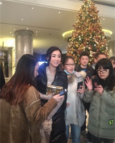 18日晚,微博用户晒出一组照片,照片中张柏芝为出席某活动现身酒店,遇到多位女粉丝围住,张柏芝面露笑容,与大家轮番自拍,虽衣着单薄但仍十分亲切微笑。