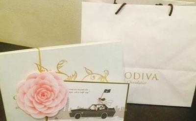 婚礼倒数5天,王阳明和蔡诗芸先发送巧克力喜饼礼盒,散布浪漫氛围,卡片上面写着“欢迎来到我们的童话世界”,另一面则画着新郎开车载着新娘,上面还有他们养的3只猫,这是他们请插画家画的,写着“1千英里的旅程,从我们第一步开始”。据悉喜饼礼盒约有300份,价值约55万台币。
