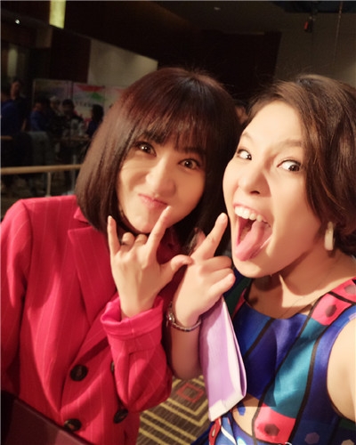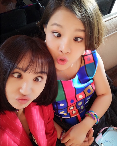 昨晚,李菲儿在微博是啊出一组和谢依霖的照片,两人摆出搞怪的模样自拍,戳鼻孔,斗鸡眼,吐舌头样样都来,跟着谢依霖自拍,李菲儿画风都不一样了。