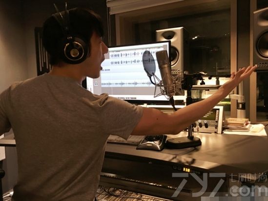 1月6日晚,王力宏晒出一张配唱中的照片,照片中,王力宏坐在录音棚里,戴着耳机,对着麦克风张大嘴巴,更高举右臂,姿势搞怪。