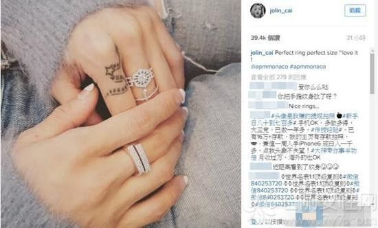 蔡依林18日在Instagram上晒了1张钻戒照,提到“完美的戒指,完美的尺寸,超爱!(Perfect ring Perfect size ~love it !)”立刻引来许多粉丝激动留言问“锦荣给的吗?”以及“要结婚了吗?”不过蔡依林的经纪人向《娱乐星光云》表示:“戒指是品牌送的,Jolin很喜欢所以拍了1张照而已。”推翻外界所有的猜测。