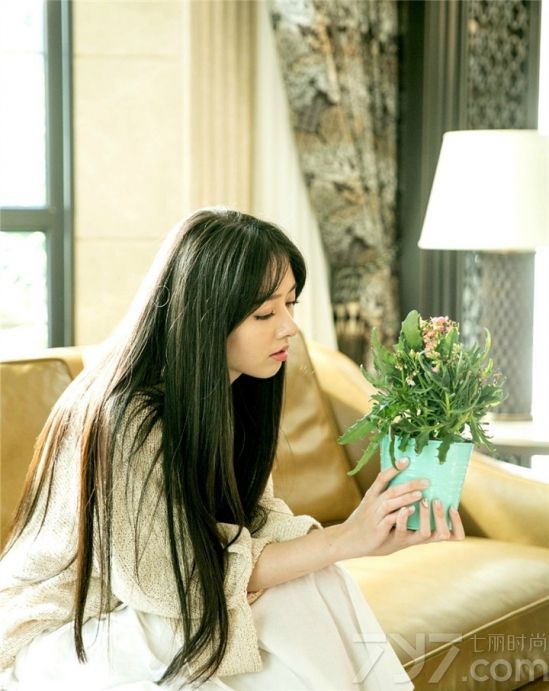 何穗最新街拍,灰色毛衣+墨绿色光泽感半裙,文艺慵懒,少女感十足。马海毛毛衣来自H&M,手提包和粉色毛拖鞋均来自Gucci,半裙来自Tibi 2016