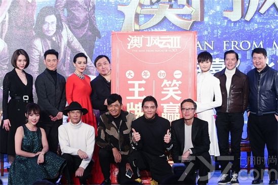 1月25日,电影《澳门风云3》在京举行“三喜临门”首映发布会。博纳影业集团总裁于冬,影片导演及监制刘伟强、王晶,主演周润发、张学友、张家辉、刘嘉玲、李宇春、向华强、向佐等等携手亮相。