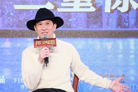 在台下忧心好兄弟的衣领,在台上张家辉更是操心起了国家大事。在“一字表衷肠”环节,张家辉用一个“爽”字来描述《澳门风云3》,原因竟是“在电影院看过后,人也爽了,身体也好了,钱也赚多了,整个中国都强大了。”