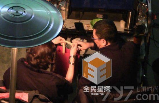 在寒冷的片场,她的替身为她走戏,她则与王家卫一同在监视器前,商讨实拍时需要注意的问题。趁着剧组人员抓紧时间进行布景的混乱时刻,陈妍希悄悄向王家卫递上一个包装精美的手提袋,并低声在他身边言语了一番。王大导演也没有过于客套,欣然接受。