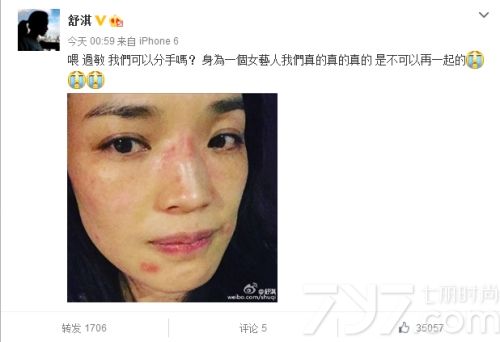 今日凌晨,演员舒淇在微博晒出自拍,并调皮地与过敏症状对话:“喂,过敏,我们可以分手吗?身为一个女艺人我们真的真的真的,是不可以再一起的。