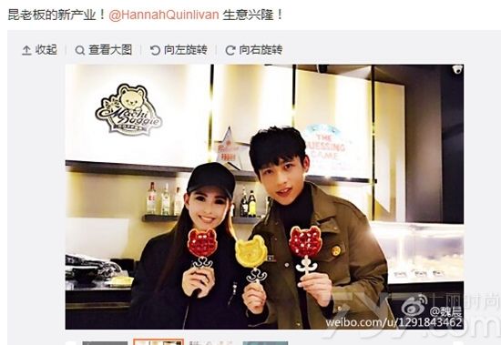 魏晨光临昆凌咖啡店,两人亲密合影关系甚好,2月25日,魏晨在微博晒出光顾周杰伦爱妻昆凌咖啡店的照片,还留言称,“昆老板的新产业!生意兴隆”。