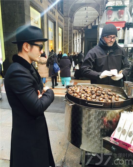 2月25日,黄晓明通过微博晒出一组米兰街头买栗子的照片,并提倡环保,称意识要从细节开始,不要乱丢垃圾。照片中,黄晓明身穿黑色风衣,非常的帅气。