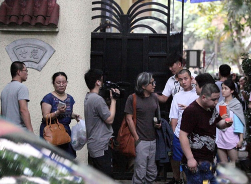当日,文章身穿印有“学生”二字的T恤,与陈可辛站在路边交谈,颇有几分“学生”与“老师”的感觉。而文章似乎也向陈可辛学到了不少东西,不停比划问这问那。随后,两人进入室内,继续交谈了很长时间。陈可辛探班拍摄,也似乎是有意为文章保驾护航。