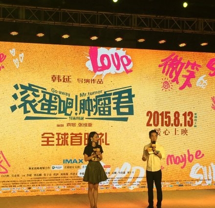 电影《滚蛋吧肿瘤君》今天下午在北京举行首映礼,导演韩延和主演白百何等亮相现场。