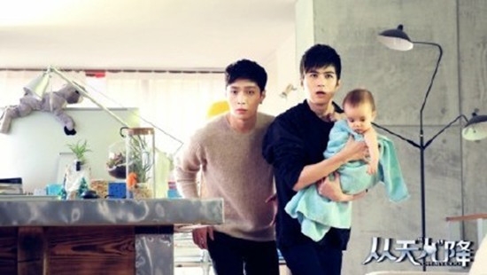 18日,由张艺兴陈学冬主演的电影《从天儿降》通过官方微博公开了海报,海报中张艺兴与陈学冬“共浴”,一个天真呆萌一个帅气高冷,两人精致的面容令粉丝心动,有爱诙谐的场面引发观众对电影满满的期待。