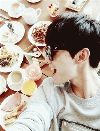 近日,杨洋在微博晒出几张吃饭的照片,更留言称,“理所当然地开吃”。照片中,他身穿圆领上衣,戴着墨镜,仰头与桌上满满的美食合影,还有露出侧脸,欲吃掉食物的搞笑画面,模样帅气阳光。