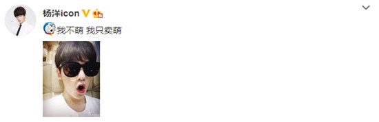 10月10日“国际卖萌日”在网上掀起了一股晒萌照热潮,小鲜肉杨洋今天也更新了一张自拍,照片中,他身穿白色半袖,带着黑色墨镜的“羊总”嘟起嘴巴,模样十分可爱,并附言“我不萌,我只卖萌”。对此,有网友留言称,“图片跟表情神同步”、“你萌你萌你最萌”、“你很萌,所以你可以卖萌”、“萌主”。