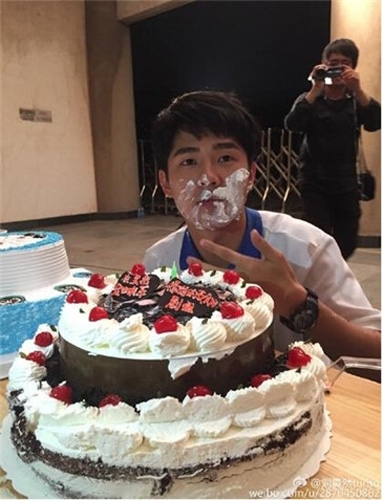 2015年10月10日,刘昊然在片场和工作人员一同庆祝18岁的生日,随后他在微博晒出一组照片,照片中他脸上涂有蛋糕变成花脸猫,迎接自己18岁的到来。