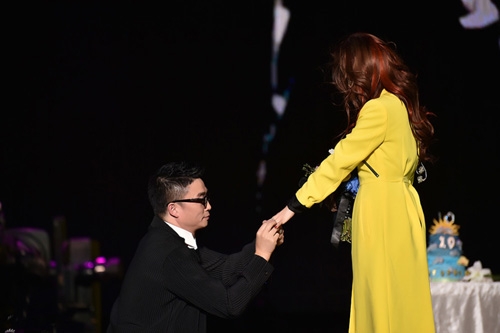 10月10日,张靓颖成都开唱。同时也是她的生日,演唱会最后,男友冯柯在为她祝福生日的同时,还准备一个大惊喜,冯柯深情表白后单膝跪地拿出钻戒求婚:嫁给我吧!并为她献唱自己写的歌,张靓颖感动落泪。