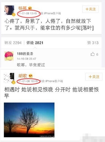 10月25日,有网友在微博称杨幂重新关注了胡歌,这一举动让两人的粉丝大呼惊叹,在杨幂大婚时,胡歌发文写下了一段意味深长的文字,随后杨幂取消了对胡歌的关注,这一举动也引起了不少网友的猜测。如今重新关注胡歌,引来众多网友纷纷猜测。