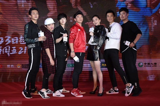 10月25日下午,跑男团齐聚海口,同冯小刚导演在电影公社合影,刚刚大婚不久的Baby素颜出镜,站在众人中间,比出剪刀手。