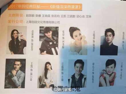 传《情深深雨濛濛》将翻拍张睿否认没有听说翻拍计划,日前,有微博账号爆料琼瑶另一部经典剧集《情深深雨濛濛》将翻拍,并爆出拟邀演员名单。其中不仅赵丽颖、张睿、张若昀、江疏影等一众人气偶像在列,“皇阿玛”邱心志以及“雪姨”王琳的回归都令人关注。