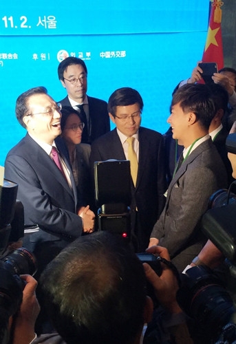 11月2日, 李克强总理出席韩国首尔举行的2015年中韩青年领导力论坛。此次论坛是李克强总理访韩期间的重要议程之一。韩庚作为中国青年精英代表团一员已抵达韩国首尔,今天上午也参加了此次2015 中韩青年领导者论坛。