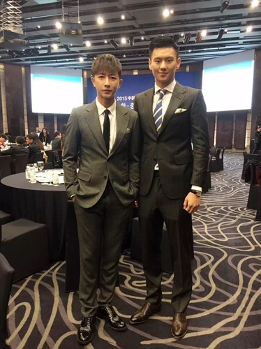 并和随团者之一的宁泽涛合影留念,两位穿上正装出席如此正式的活动,网友直呼:“太帅了,简直甩那些整容脸几条街!”更有网友调侃“这身高差我喜欢!”