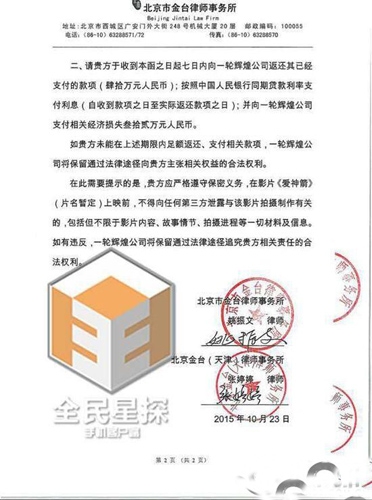 从律师函的内容看,剧组并未再对曹云金违约的具体情况进行说明,而是直接要求其偿还已收到的片酬40万、赔偿经济损失32万,共计72万元人民币,同时还要求曹云金对已得的40万片酬按利率支付利息。