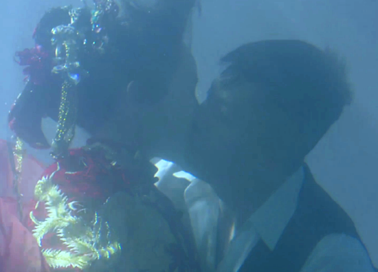 这场水下吻戏呈现给观众的画面很唯美。拍摄时候,对演员而言却是很艰辛。杨志刚介绍说:“我们真的是在海里拍摄完成的。当时天还很冷,水很凉。加上水里的戏本来就特别难拍,我们又要保证角度,调动位置,所以进度很慢。需要有超常的耐心和毅力才能坚持下来。”在拍摄吻戏部分,杨志刚还不小心呛到了水,“人在水里很容易出现各种状况,我一张嘴,就感觉很难控制呼吸的节奏,一下子就呛到水了。当时就感觉浪漫也是一件挺辛苦的事情。”