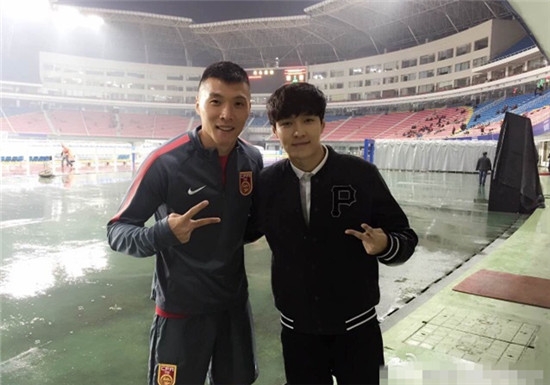 张艺兴在微博上晒出自己和国足球星的合影,同为长沙人的国脚黄博文,这次也以队长身份出战主场,加上张艺兴的现场助阵,极大的鼓舞了士气,也让国足一鼓作气以12:0的大比分优势拿下了比赛。中国队正式比赛前,由演艺明星现场演唱国歌的非常少,这一次张艺兴为了能够有更好的演出,特意在赛前进行了多次演练。演唱时,张艺兴披着中国队加油的红色围巾,带领全场人齐唱国歌,还颇有球员范儿的右手亲抚心口,表情严肃庄重,满满的正能量。