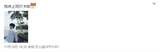 李易峰更新微博,称“我来上班打卡啦”,并配一张照片,微博一经发出,瞬间引起无数网友关注。