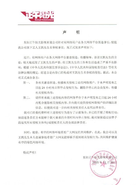 还有网友曝出一张王凯上节目露出内裤边的照片指出KKW穿着男用情趣内裤,更是遭到网友怀疑性取向有问题,随后经纪公司东阳正午阳光影视发表声明辟谣,表示“清者自清”。