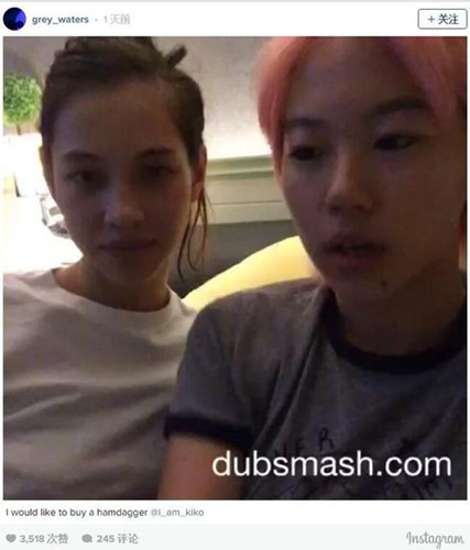 12月1日报道,2人还一起拍摄搞怪小短片,吸引许多粉丝关注。短片中,她和好友水原希子打扮休闲,2人分别对嘴饰演英文不标准的男人和纠正口音的女人。影片中,只见窦靖童一脸无辜地对镜头说:“我想买个汉堡。”但口音却被一旁的水原希子疯狂纠正,她最后因受不了而转头向对方大吼说要买“hamdagger”,逗趣演出笑翻许多网友,也意外曝光活泼的一面。