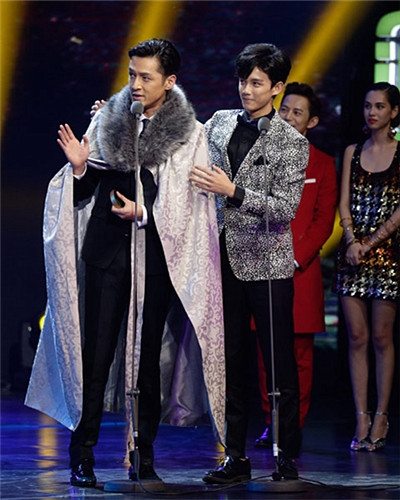 电视剧《花千骨》、《琅琊榜》绝对是当晚最大的赢家,不仅荣获年度剧王称号,其主演“白子画”霍建华,“宗主”胡歌分获年度最受欢迎演员以及年度最佳电视剧演员称号。各自电视剧大获丰收的同时,胡歌、霍建华也成为全场活动的焦点,两人在台下的一举一动,均引得粉丝们一阵阵的尖叫声。两人也算是顺从民意,频繁咬耳互动,胡歌甚至亲昵的吻住了霍建华的手。而对于能把自己一秒变小公举的只有胡歌这件事,霍建华居然点头应许,瞬间令全场气氛嗨到最高潮。