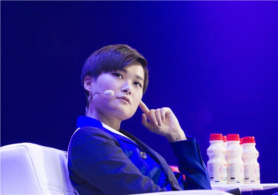 井柏然出席与某品牌合作设计的全球限量版跑鞋发布会,内搭蓝色高领毛衣,外穿牛...