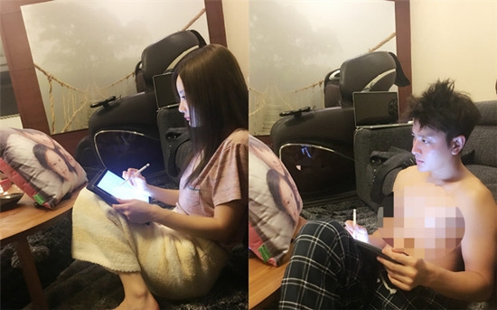 昨晚,贾乃亮在微博晒出一组搞怪自拍照,晚上更是又晒出一张自画全家福,还有他和老婆李小璐蹲地画画的模样的照片,小璐认真画画的样子被网友大赞素颜好美,而贾乃亮裸着上身,胸前打满马赛克又再度遭网友调侃。
