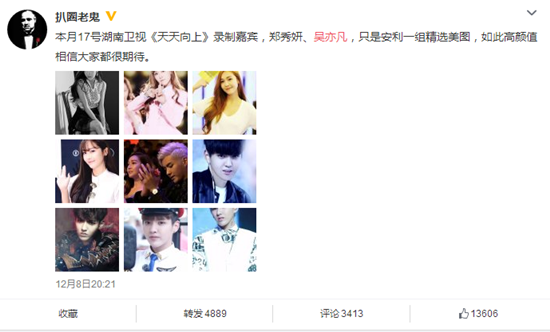 12月9日,据韩国媒体报道,EXO前成员吴亦凡与少女时代前成员Jessica将于17日一同录制湖南卫视《天天向上》。