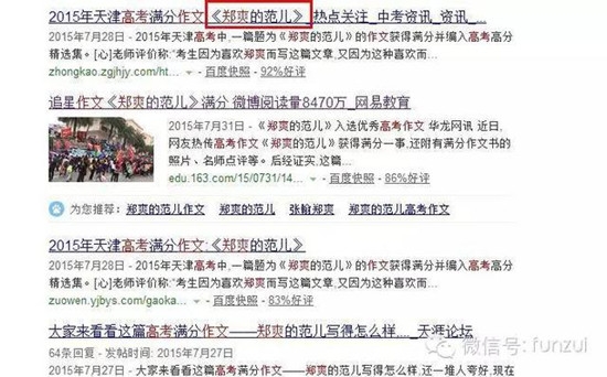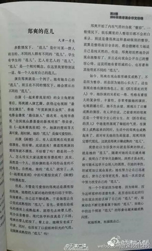 在讲述着第一个因素之前,我想和大家分享一个小故事。今年夏天,网上流传了一篇高考满分作文题目是《郑爽的范儿》,是不是真的满分,网络上有不同的说法。不过确实被收录在《2015-2016高考作文满分特辑》的图书里。文章里小作者分析,自己的偶像郑爽如何从可爱范儿到漂亮范儿再到现在的成熟淡然范。