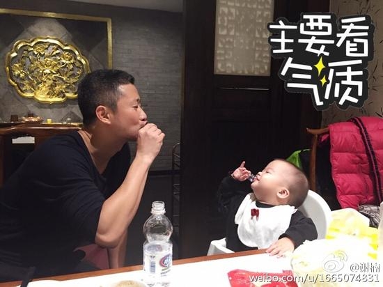 12月16日下午,谢楠在微博上晒出了老公吴京和儿子“干杯“的照片,并配文称:“小吴,我干了,你随意!#主要看气质#”