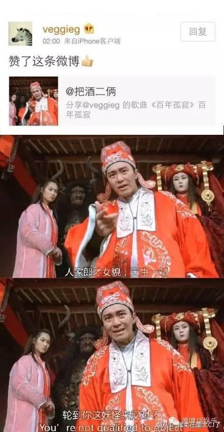 可能谁的点赞都没有王菲来的这样机智,王菲和谢霆锋复合后遭受外界质疑。王菲点赞《大话西游》的台词:人家郎才女貌,天生一对,轮到你们这些妖怪来反对。