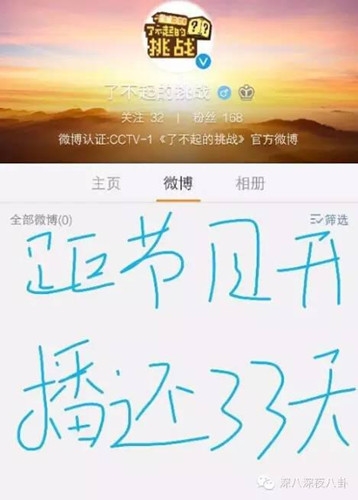 在开播一个月前,官微傲娇地放了这张图。。果真是央视爸爸的节目,,看不看随便你,,老子壕的是!