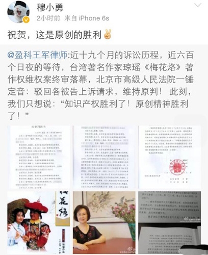 琼瑶诉于正侵权案胜诉,网友:于妈有难八方点赞,近十九个月的诉讼历程,台湾著名作家琼瑶《梅花烙》著作权维权案终审落幕,北京市高级人民法院一锤定音:驳回各被告上诉请求,维持原判!于正败诉,被告共赔500万.