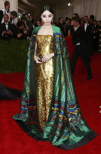 据台湾媒体《东森新闻》12月23日报道,内地演员范冰冰因演出《武媚娘传奇》身价翻涨,还因此和同剧演员李晨陷入热恋,常常在微博上放闪。日前参与了有“时尚界奥斯卡”之称的纽约大都会博物馆慈善晚会(MetBall),穿了一袭“紫金城”礼服,被时尚杂志《Cosmopolitan》选为2015十佳红毯造型,掀起话题。