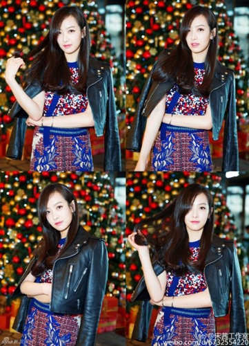 12月24日,宋茜工作室晒出一组宋茜圣诞街拍的照片,照片中宋茜一袭黑发身着皮衣花裙,微微笑着的样子尽显冬日女王范儿。