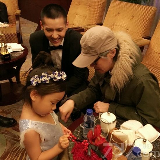1月7日,电影《美人鱼》官方微博曝光一张周星驰、甜馨和吴亦凡温馨合影,并写道:“星爷周星驰,小爷吴亦凡,馨爷甜馨,美人鱼爷仨聚首笑开了花!”照片中,甜馨穿着无袖公主裙,头戴花环,花仙子的装扮,站在桌子前专心插花玩耍,周星驰戴着棒球帽,探过身体围观甜馨,而被称为女儿控的吴亦凡一副花痴样,咧嘴笑开了花,原形毕露。