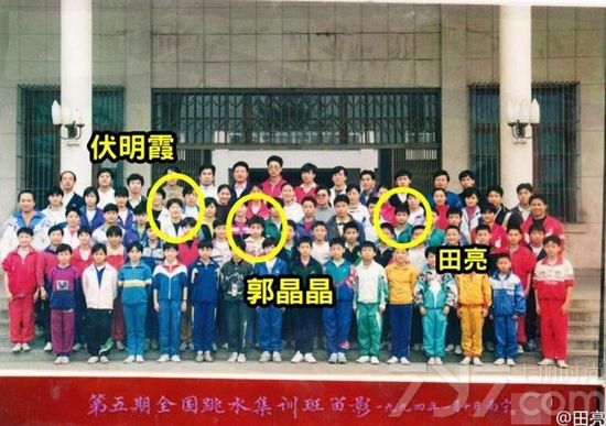 照片中的小运动员还都是半大的孩子,要找到熟脸还真是不太容易。但万能的网友还是凭借尖锐的眼光找到了伏明霞和郭晶晶。但田亮在哪里还是要猜一猜。