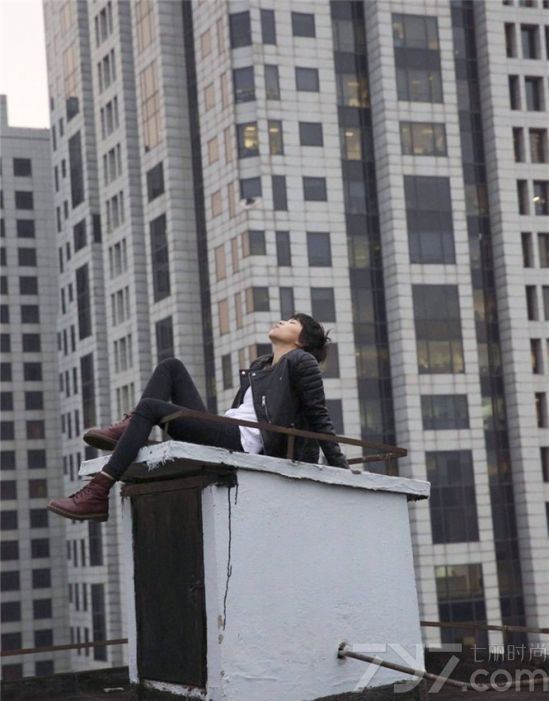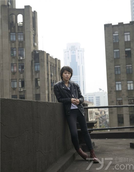 窦靖童在微博晒出一组帅照。照片中,她留短发,穿黑色皮夹克,搭配棕色皮靴和紧身裤,时而放风筝,时而坐在天台上45度角仰望天空。显得十分文艺。