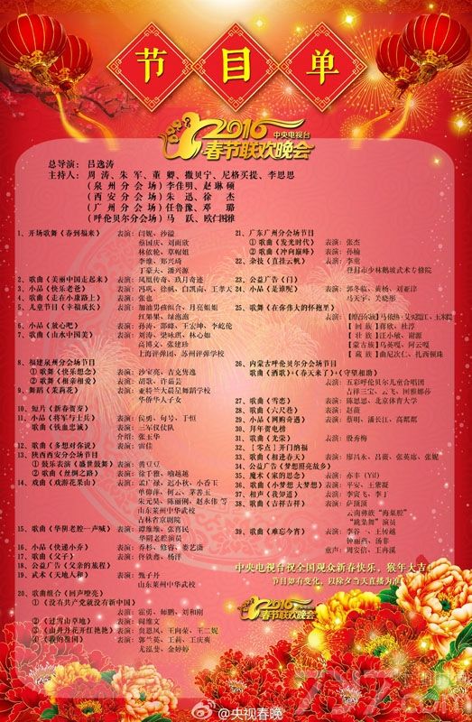 2月6日,央视春晚在官方微博上正式公布了最终版的节目单,至此所有的节目演出安排都尘埃落定。