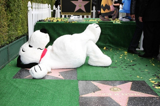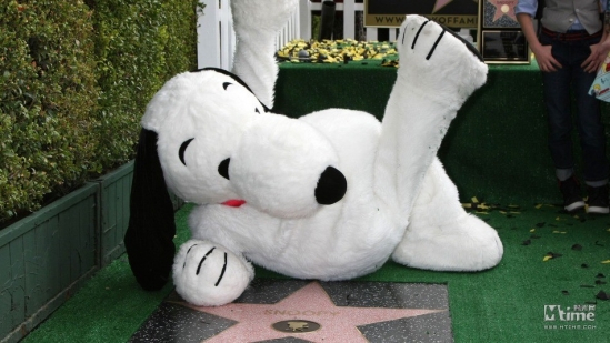 毛茸茸的史努比在众位人类朋友的见证下留名好莱坞星光大道,成为了史上第一只获此荣誉的米格鲁猎兔犬。史努比当天异常兴奋卖萌不停,大有“星光大道我最萌”之势。