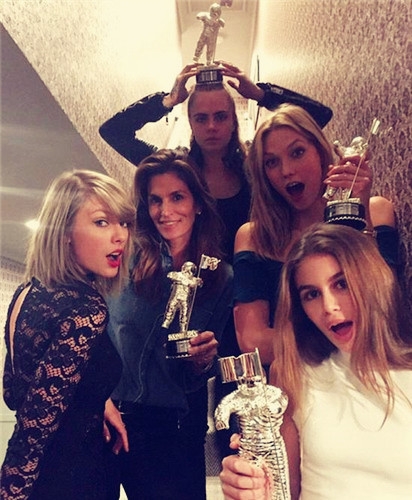 据悉,在已经曝光的某现场照片中,包括辛迪、泰勒与卡拉、卡莉,另外,辛迪的女儿也手捧奖杯站在一旁,她们愉快地挤在家中楼梯井处合影。超模辛迪上传这站照片并开玩笑留言:感谢这位宇航员和泰勒,我想这家伙一定会喜欢自己的这个新家。