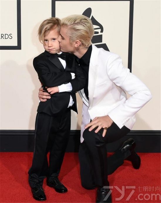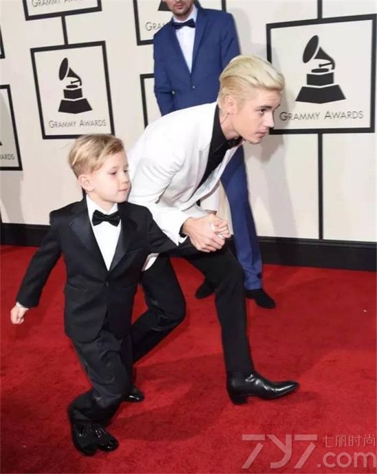 小编觉得本届格莱美最大的亮点是:贾斯汀比伯6岁的弟弟Jaxon Bieber正式出道!穿着小西装,打着小领结的Jaxon Bieber,就这么高调又傲娇地出道了!